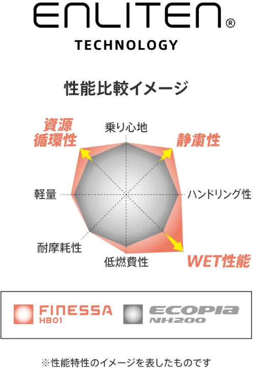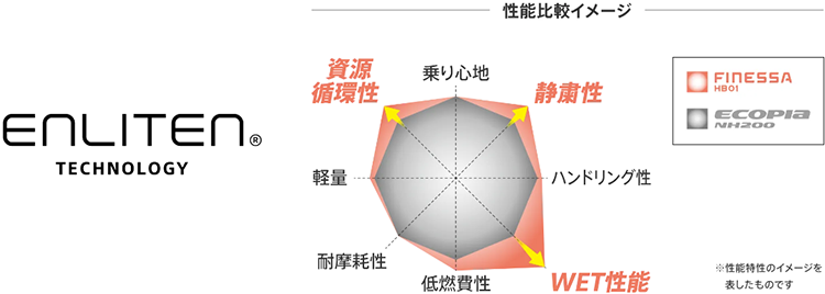 ENLITEN®は従来のタイヤ性能を向上させた上で、タイヤに求められる多様な性能をお客様ごと/モビリティごとにカスタマイズする、究極のカスタマイズを目指すブリヂストンの商品設計基盤技術です。